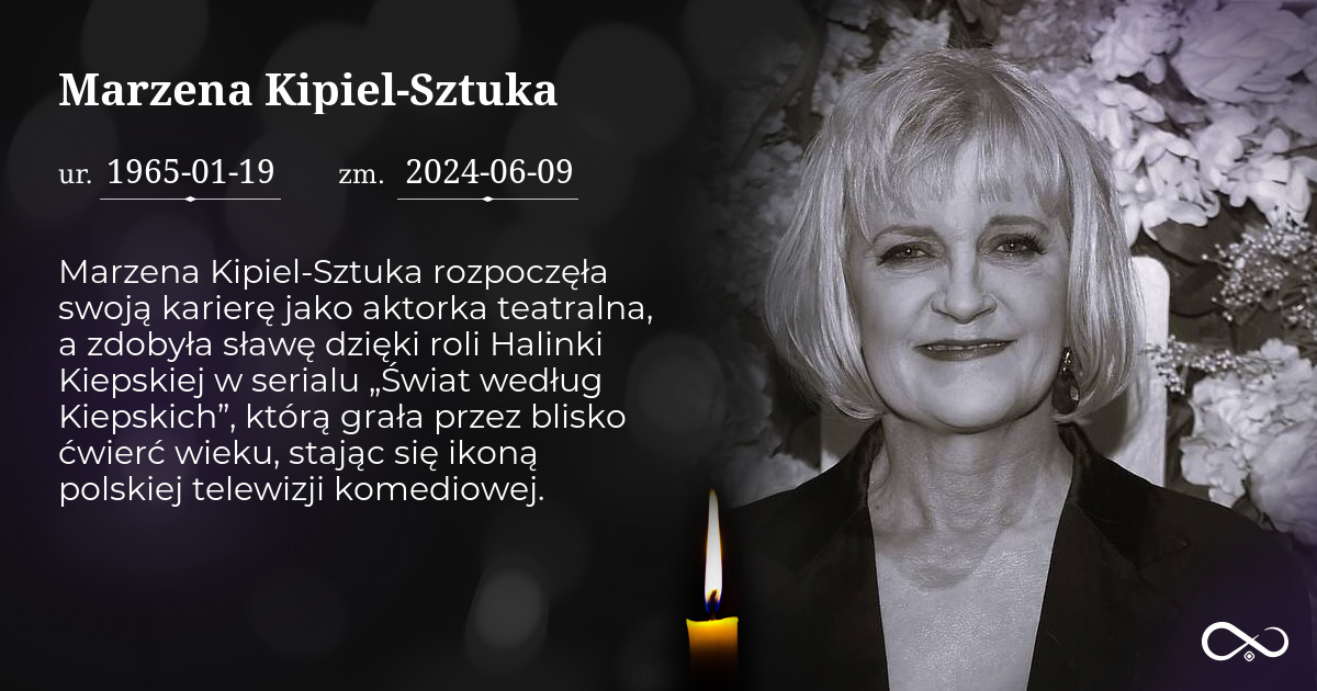 Marzena Kipiel-Sztuka, znana głównie jako Halinka Kiepska z popularnego serialu „Świat według Kiepskich”, zmarła 9 czerwca 2024 roku. Przez wiele lat borykała się z depresją oraz przewlekłą obturacyjną chorobą płuc. Miała 58 lat.